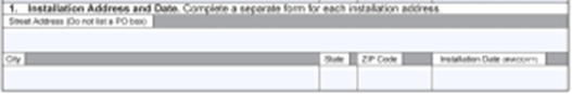 - Line 1: Installation address and date: Add the address where the system was installed and the installation date.