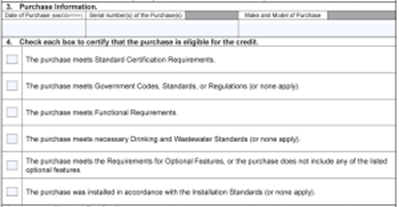 - Your invoice that shows the equipment cost (not installation charges), make, and model.